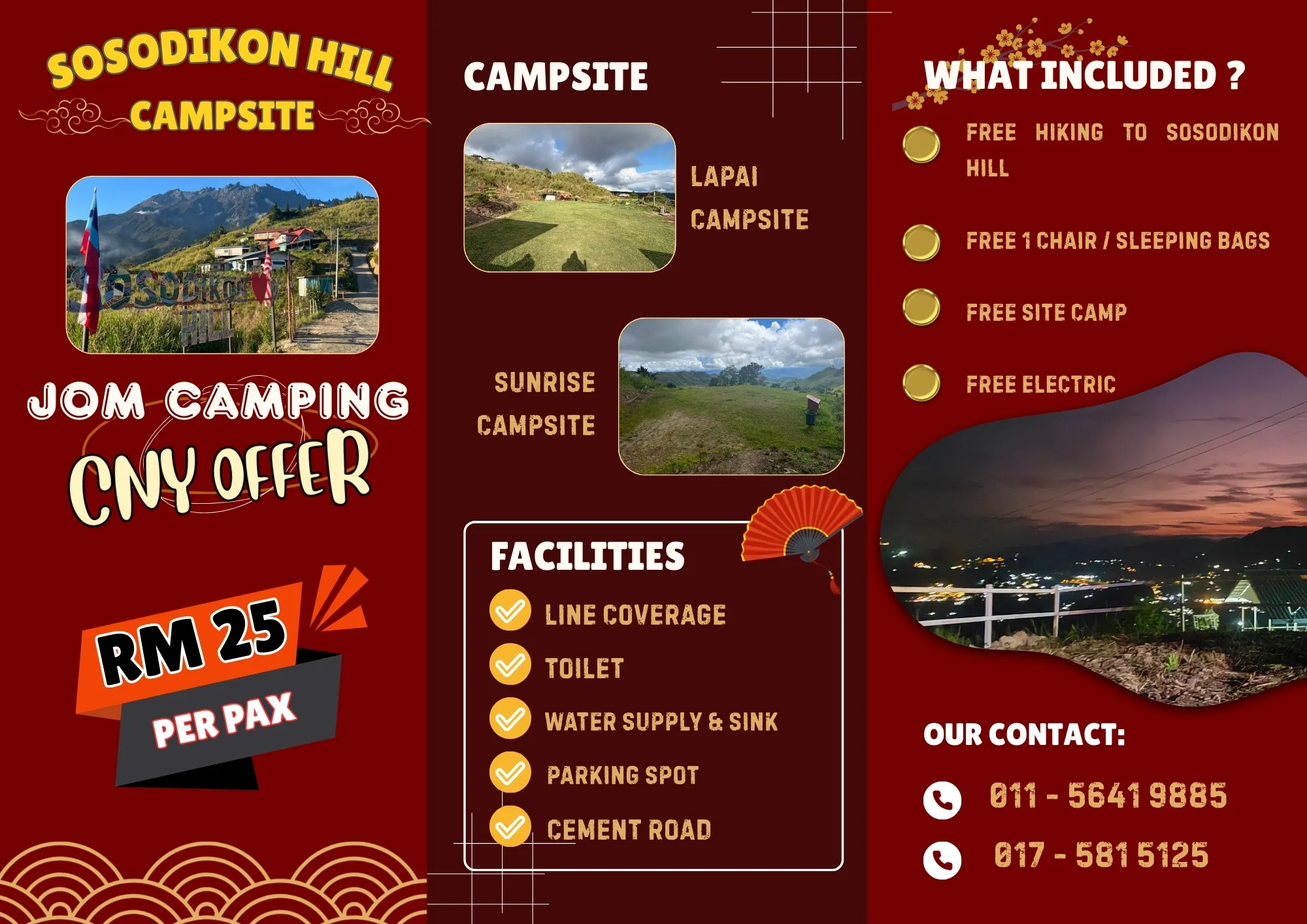 Campsite di Sosodikon Hill Kundasang. Park & camp mudah, tandas bersih, air & spot gambar ikonik.